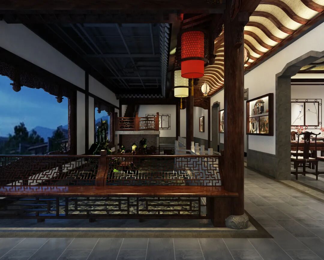 宁静的氛围洒满此处,左侧是长廊,右侧是夜空,这种亦真亦幻的景色,真是使人遐想无限。